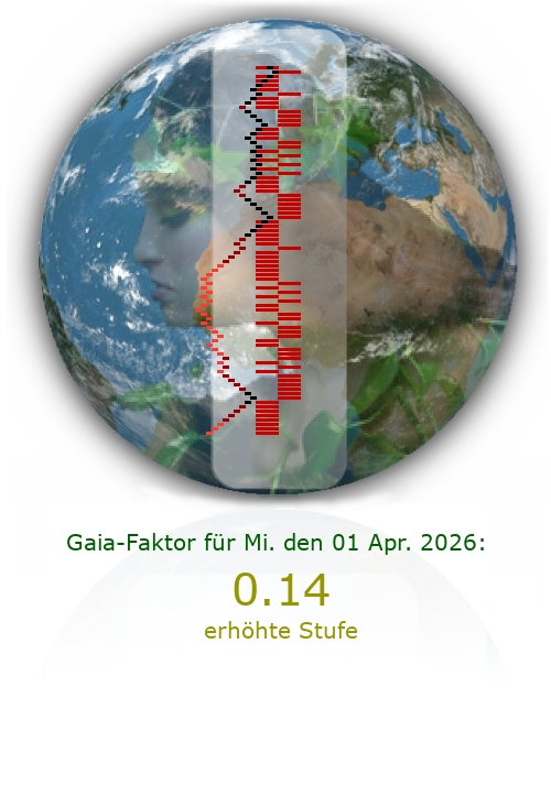 Heute bricht der Gaia-Faktor aus der Norm aus. Damit entsteht eine erhöhte Gefahr für unvorhergesehen Ereignisse. Insbesondere wenn der Gaia-Graph den hellen Bereich verläßt, kann eine starke emotionale Situation entstehen. Risikoreiche Entscheidungen sollten heute vermieden werden. Vermeiden Sie unüberlegte Entscheidungen - die globale Gaia-Freqenz ist aus irgend einem Grund leicht erhöht.